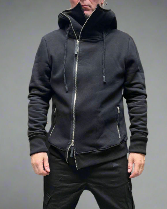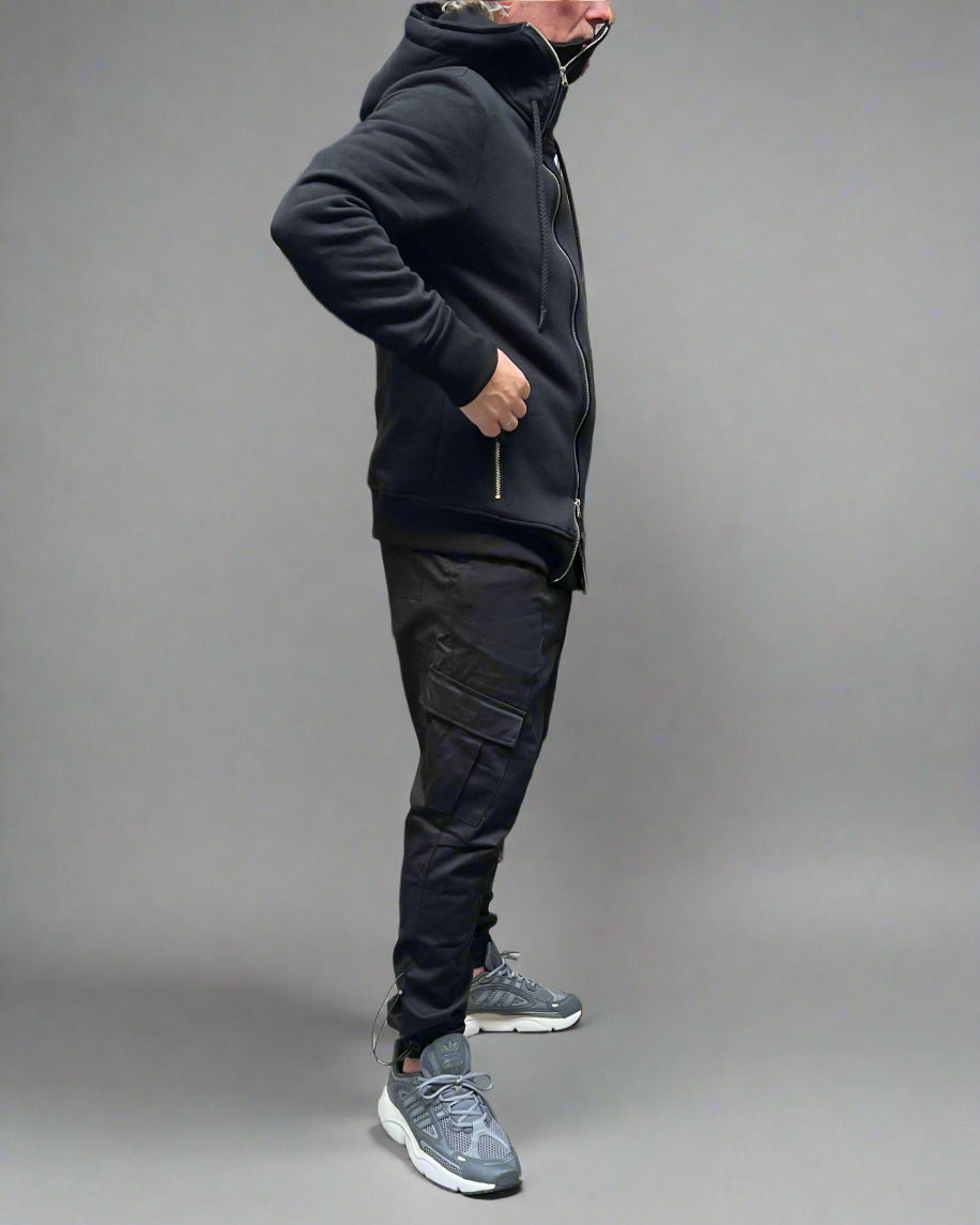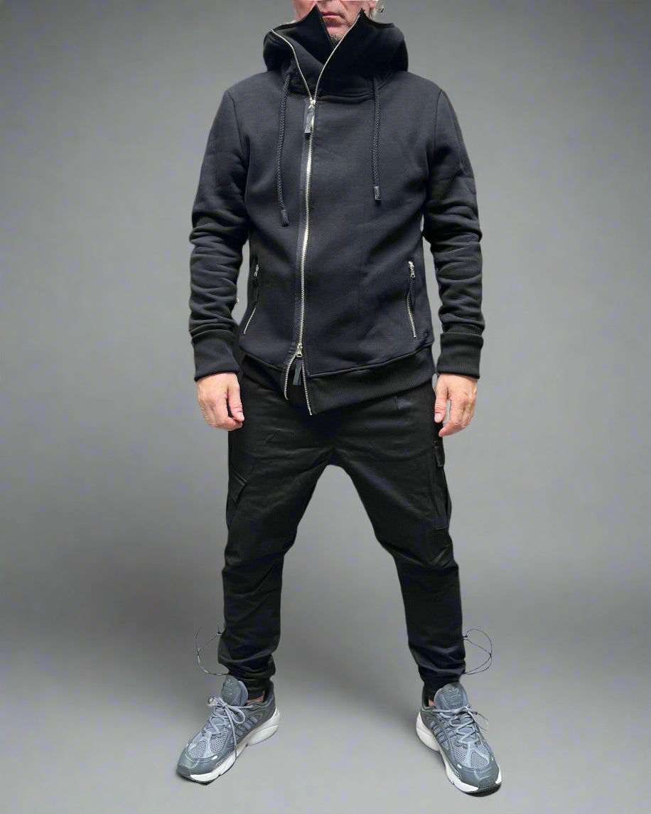 Czarna bluza BALBOA to esencja miejskiego stylu, która łączy oryginalność z codzienną wygodą. Wykonana z wysokiej jakości miękkiej bawełny zapewnia nie tylko komfort, ale także trwałość i przyjemną miękkość w dotyku. Asymetryczne zapięcie oraz obszerny kaptur ze sznurkami tworzą unikatowy, streetwearowy charakter, który wyróżnia ją na tle standardowych modeli.