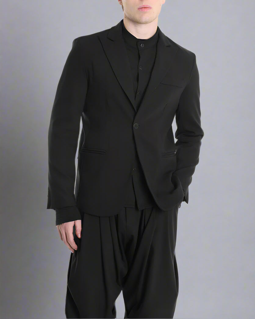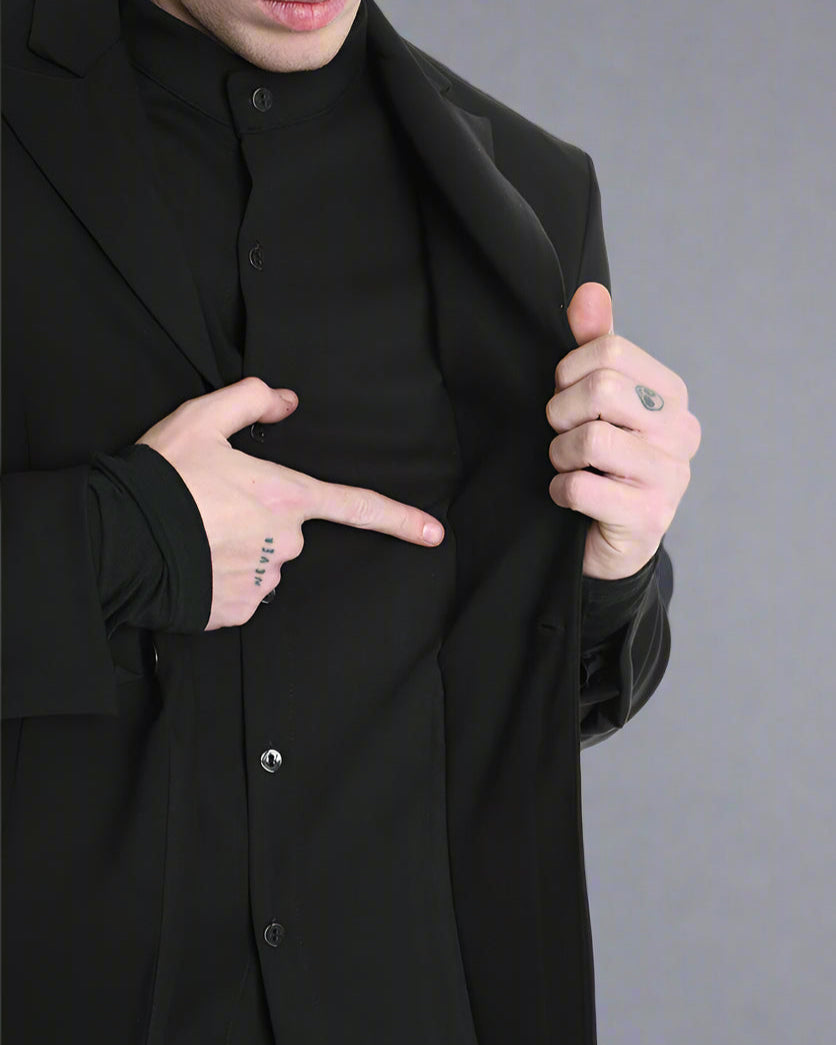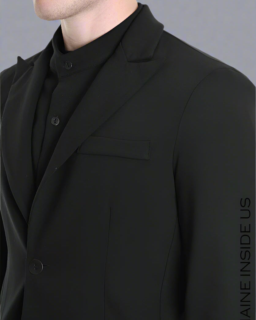 Klasyczne detale, takie jak kieszenie z wypustką, zapięcie na guzik czy ozdobne guziki przy mankietach, nadają całości ponadczasowego charakteru. To model, który świetnie sprawdzi się zarówno w stylizacjach biznesowych, jak i smart casual.