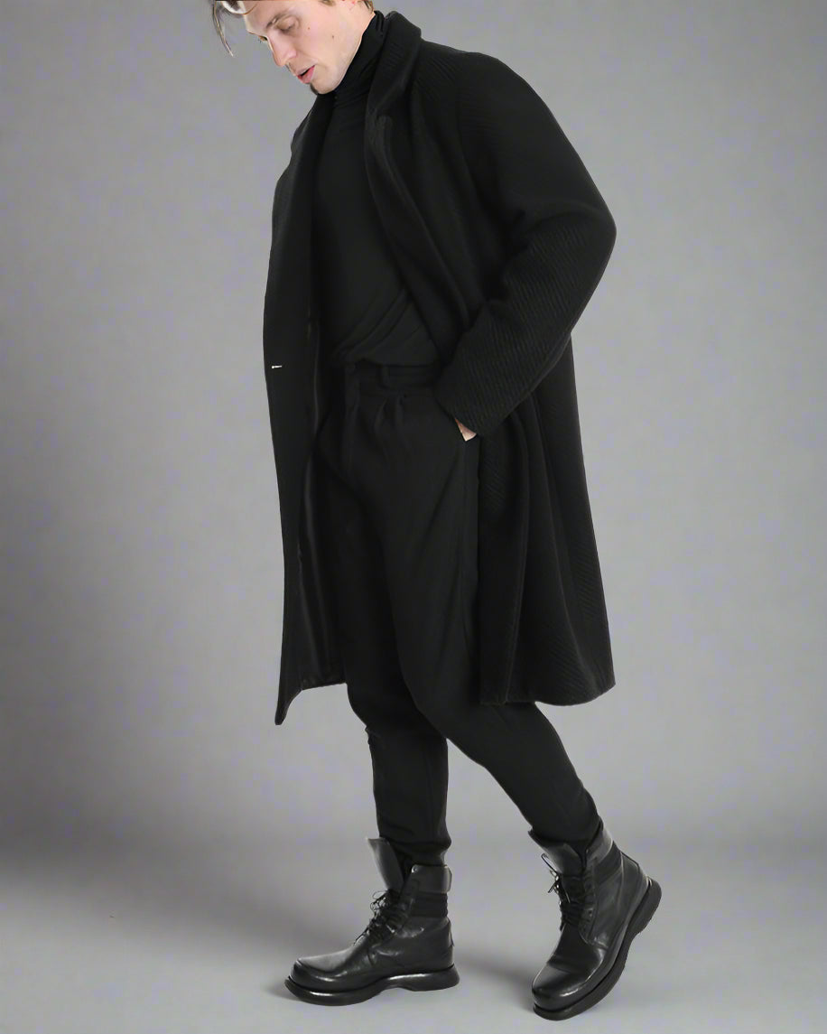 Wyposażony w praktyczne kieszenie i zapięcie na guziki, płaszcz łączy funkcjonalność z klasycznym designem. W pełni podszyty, gwarantuje dodatkowy komfort i trwałość, a staranne włoskie wykonanie podkreśla jego prestiżowy charakter. Ten model to niezastąpiony element garderoby, który doda szyku każdej stylizacji, od casualowych po smart-casualowe.