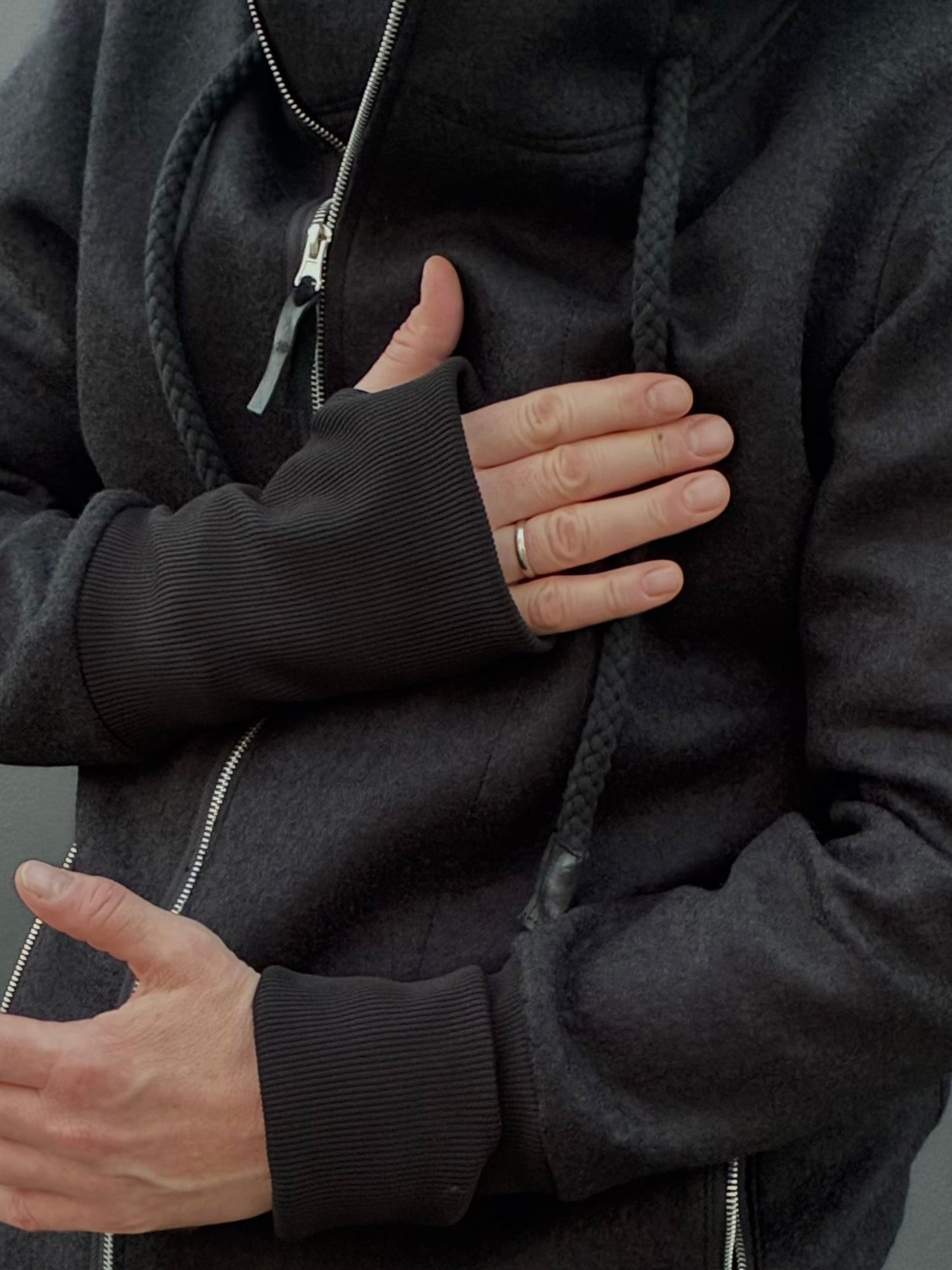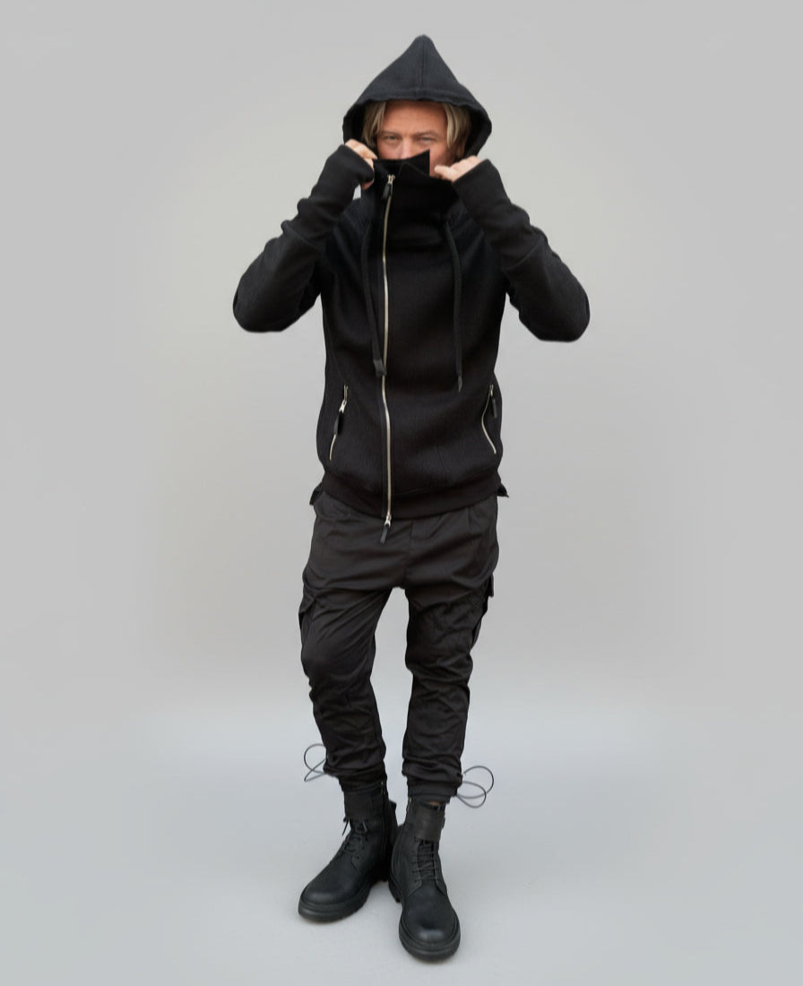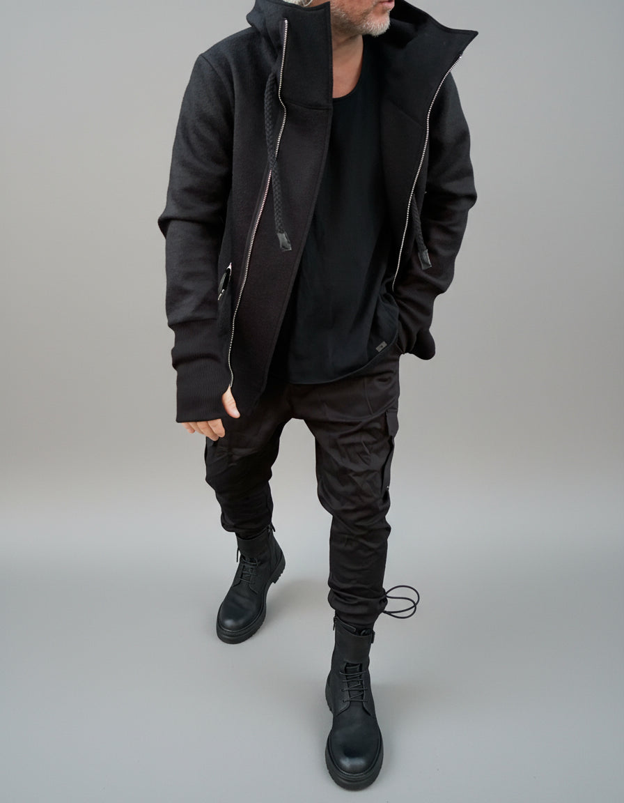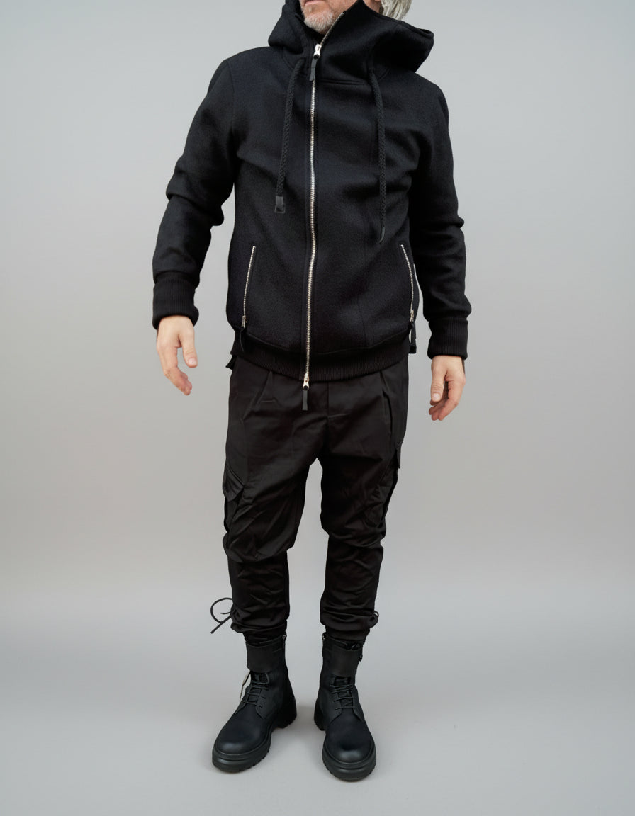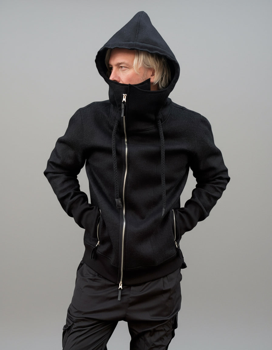 Czarna bluza BALBOA w wersji wełnianej to esencja miejskiego stylu, która łączy oryginalność z codzienną wygodą w harmonijny sposób. Wykonana z wysokiej jakości miękkiej dziewiczej wełny, zapewnia nie tylko wyjątkowy komfort termiczny i oddychalność, ale także trwałość i przyjemną miękkość w dotyku. Asymetryczne zapięcie oraz obszerny kaptur ze sznurkami tworzą unikatowy, streetwearowy charakter, który wyróżnia ją na tle standardowych modeli.