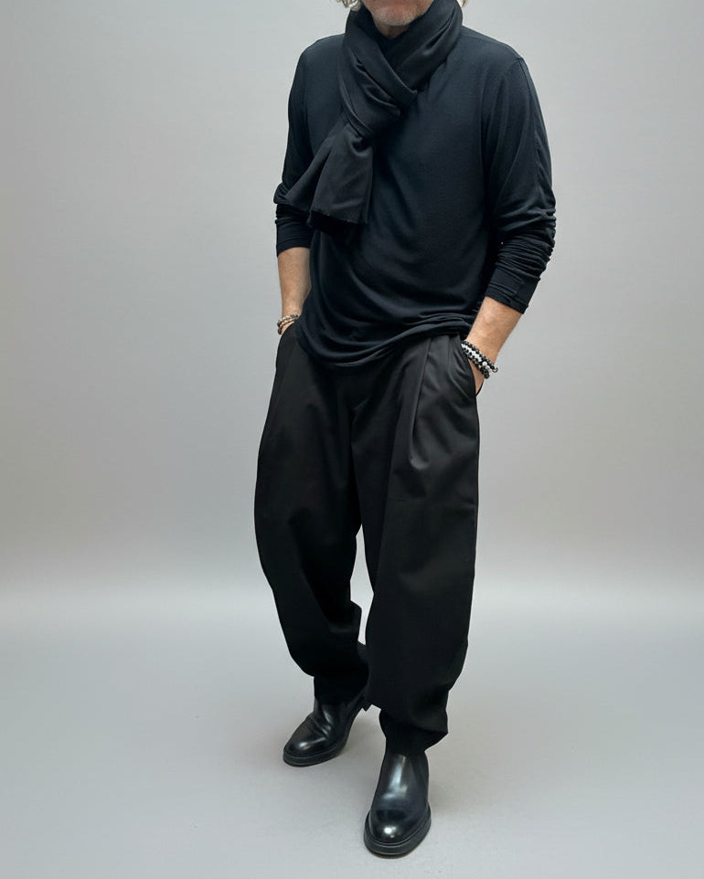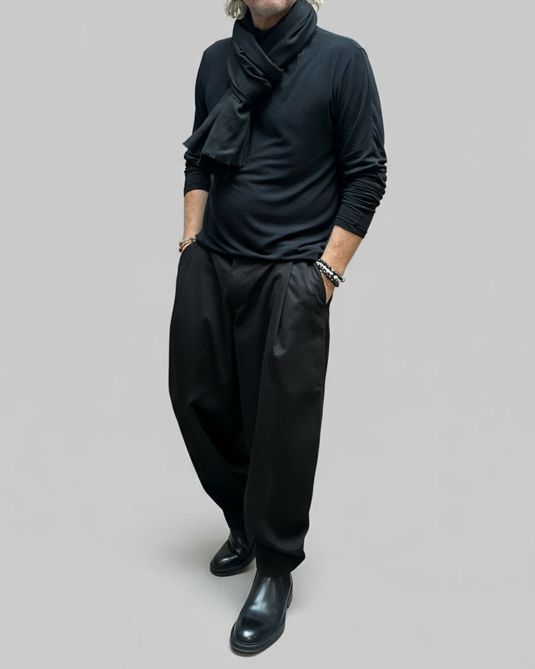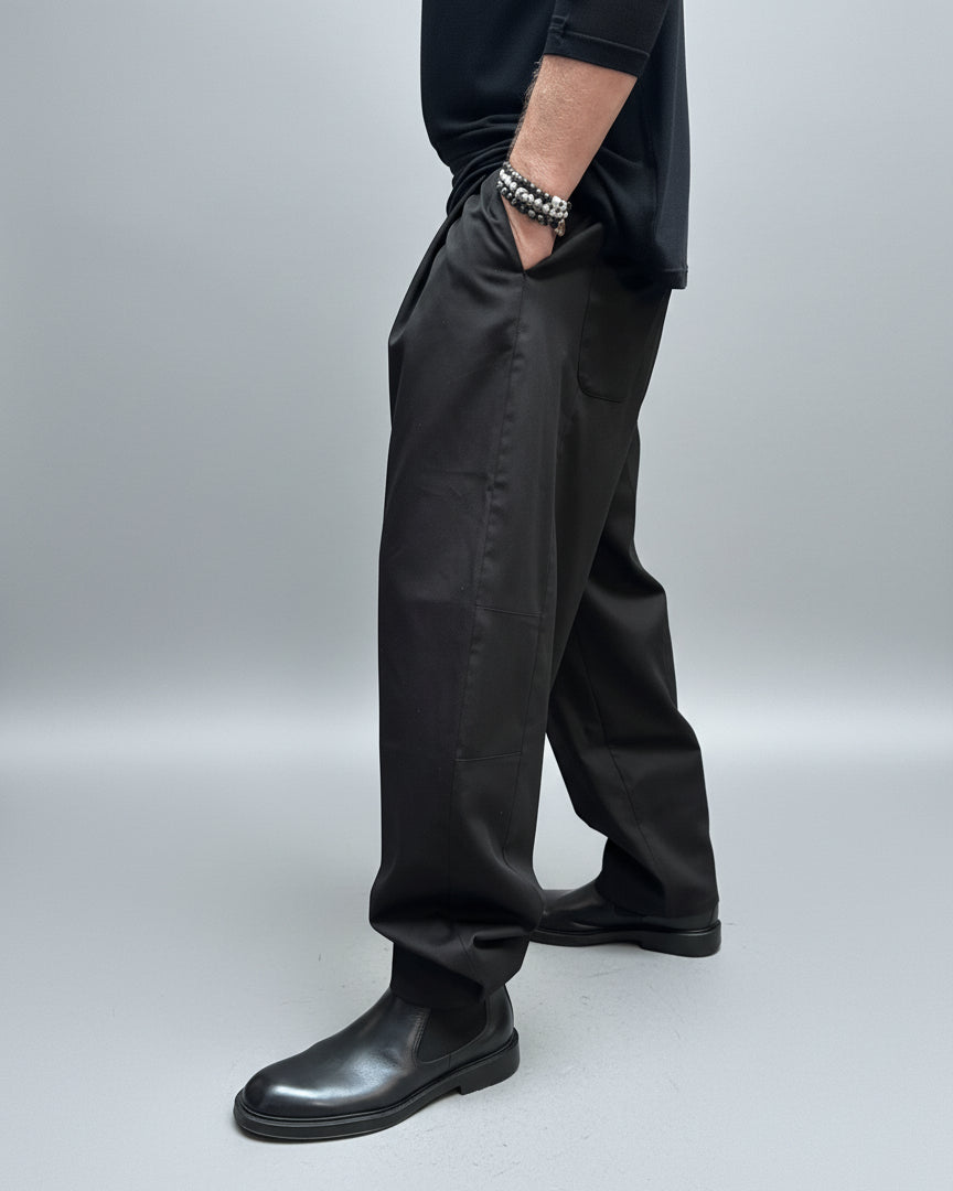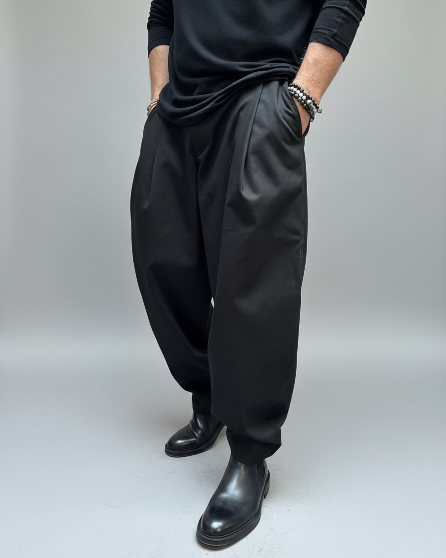 Spodnie Pompei to uosobienie swobodnej elegancji w ponadczasowym stylu. Wykonane z wysokiej jakości tkaniny, łączą wyjątkową miękkość z trwałością, zapewniając komfort i naturalną oddychalność przez cały rok. Ich luźny, szeroki krój, precyzyjnie dopracowany, oferuje nieograniczoną swobodę ruchów, jednocześnie podkreślając sylwetkę dzięki wyrafinowanemu ułożeniu materiału.