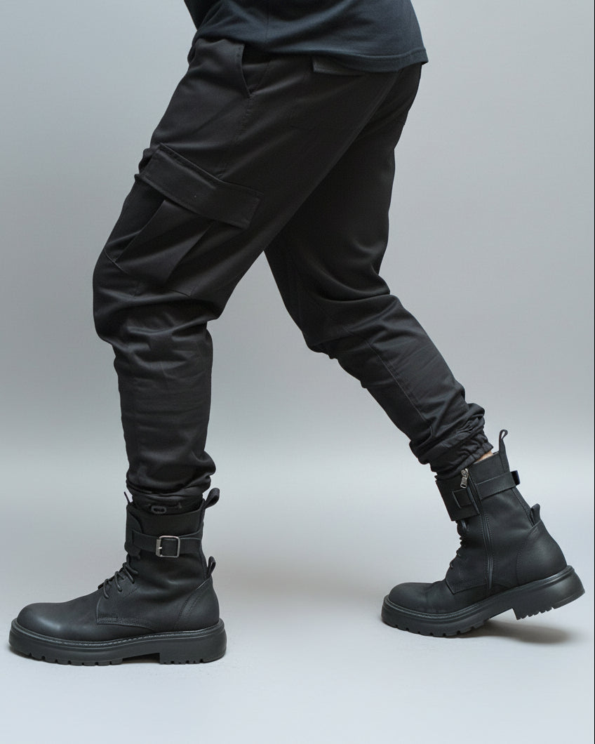 Te luźne spodnie CARGO z obniżonym krokiem to doskonały wybór do codziennych stylizacji, zapewniające komfort i swobodę ruchów. Wykonane z wysokogatunkowej elastycznej tkaniny bawełnianej, będą idealne na co dzień. Posiadają ściągacz w pasie i przy nogawkach, co zapewnia dopasowanie i wygodę. Dodatkowo, spodnie wyróżniają się dużymi, praktycznymi kieszeniami z tyłu i po bokach, które dodają im funkcjonalności oraz modnego wyglądu.