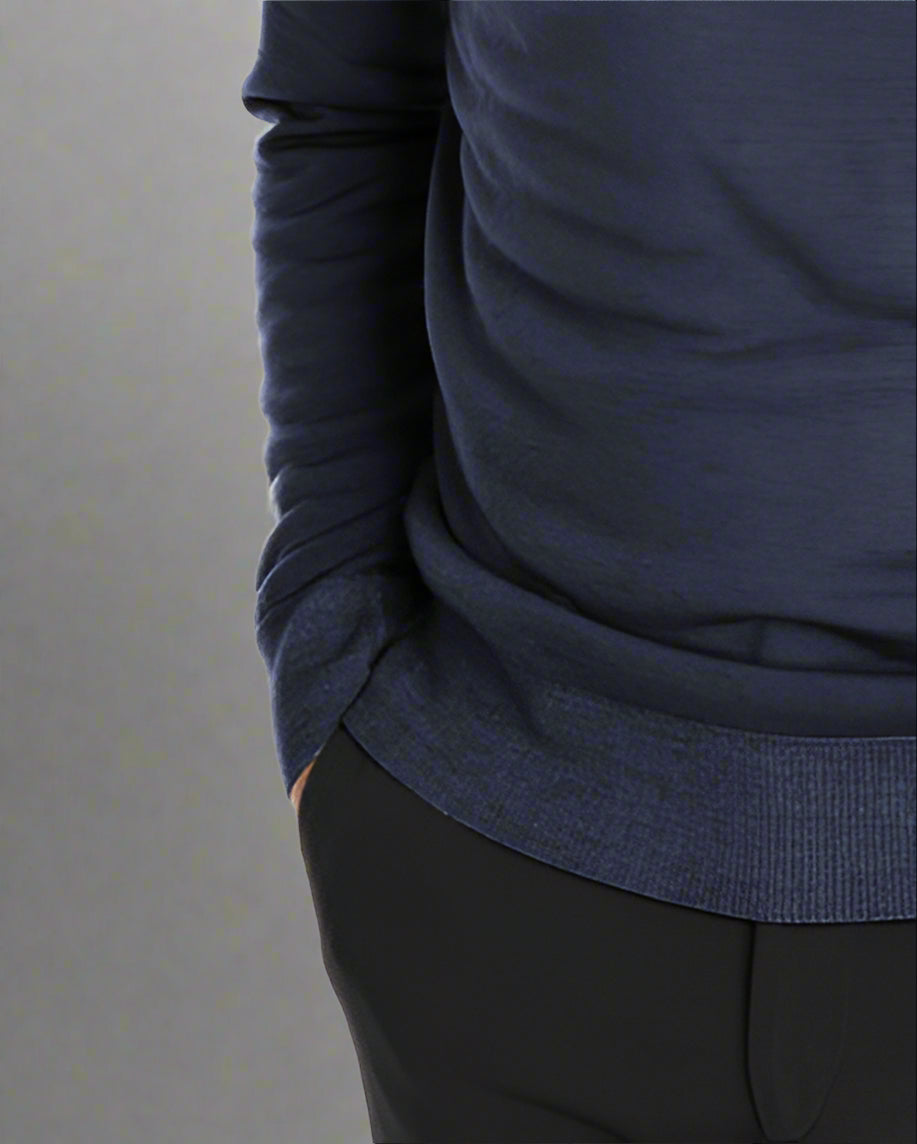 Wysoki kołnierz nadaje swetrowi wyrafinowanego charakteru, a technika barwienia acetatem gwarantuje głęboki, trwały kolor, który wyróżnia go spośród klasycznych modeli. Praktyczne detale, takie jak staranne wykończenie, podkreślają dbałość o jakość, czyniąc ten model niezastąpionym elementem garderoby. Świetnie sprawdzi się zarówno w codziennych, casualowych zestawach, jak i w bardziej formalnych stylizacjach smart-casualowych, dodając im elegancji i subtelnego szyku.