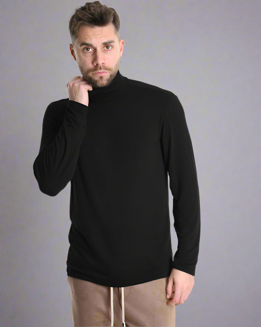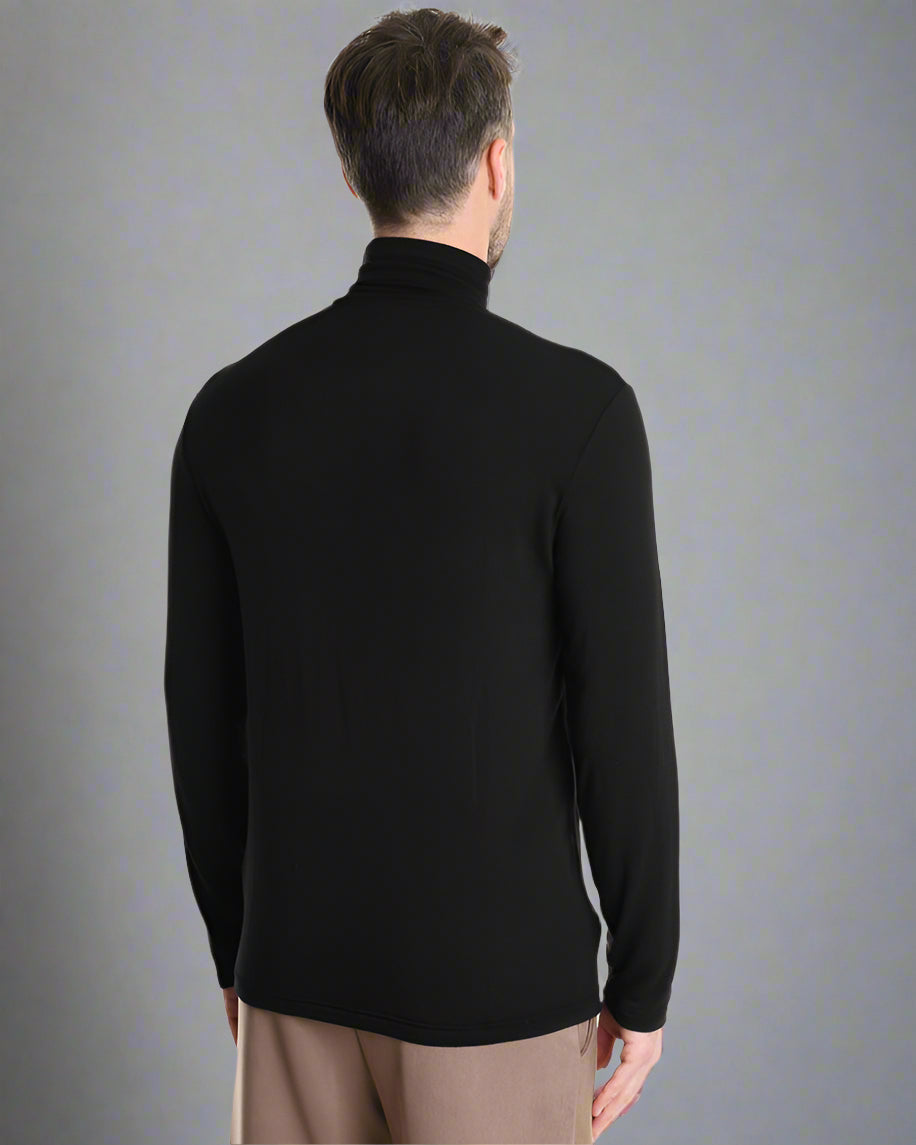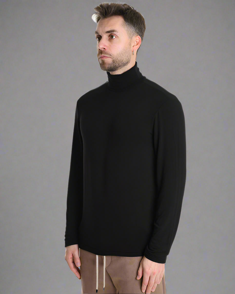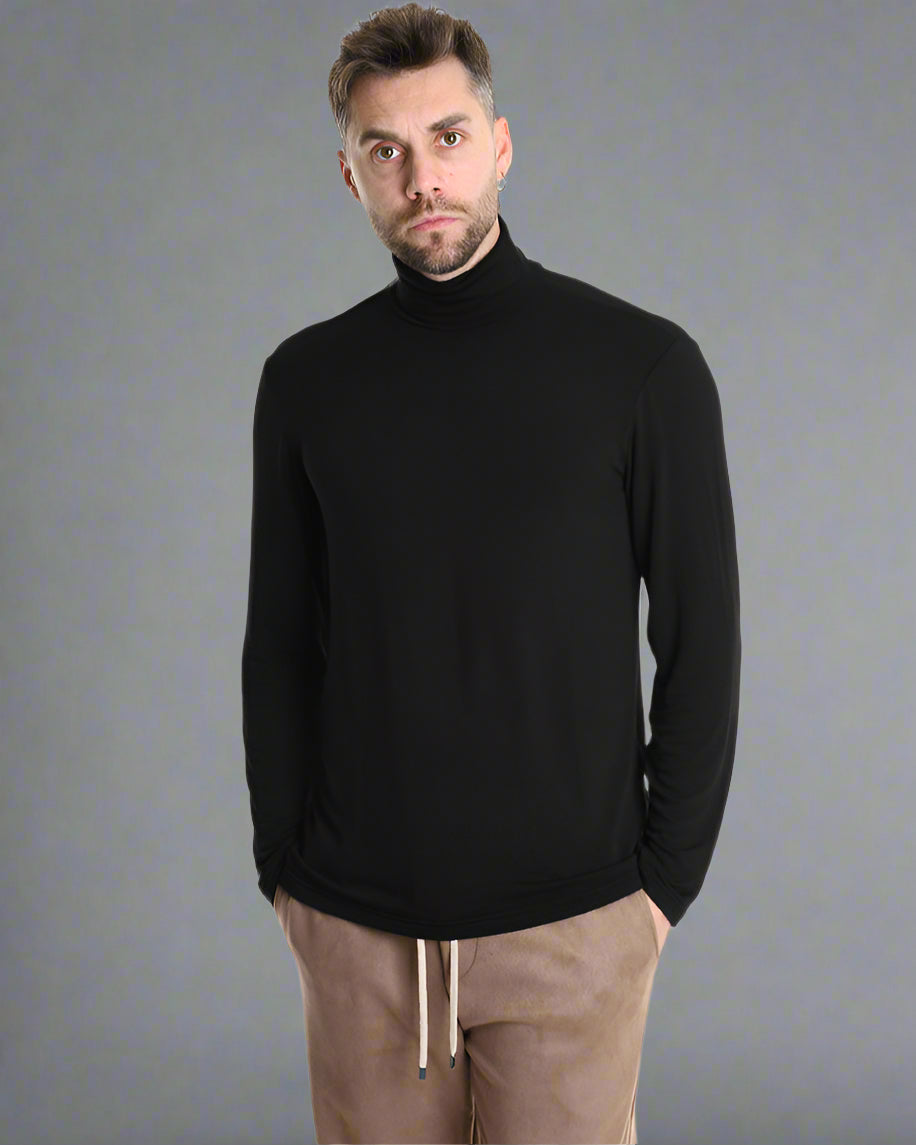 Wysoki kołnierz nadaje całości eleganckiego charakteru i stanowi praktyczną ochronę w chłodniejsze dni. Prosty, regularny krój sprawia, że sweter jest niezwykle uniwersalny – pasuje zarówno do formalnych stylizacji z marynarką, jak i do casualowych zestawień z jeansami czy chinosami.