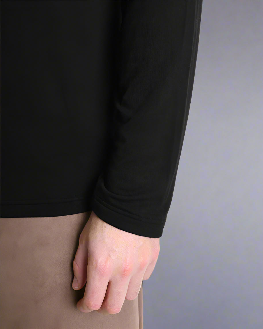 Sweter regular fit z bambusa to model, który wyróżnia się nowoczesnym minimalizmem i wyjątkowym komfortem. Uszyty we Włoszech z elastycznej tkaniny na bazie włókna bambusowego, łączy w sobie naturalną miękkość, oddychalność i trwałość z subtelną elastycznością, która zapewnia idealne dopasowanie do sylwetki.