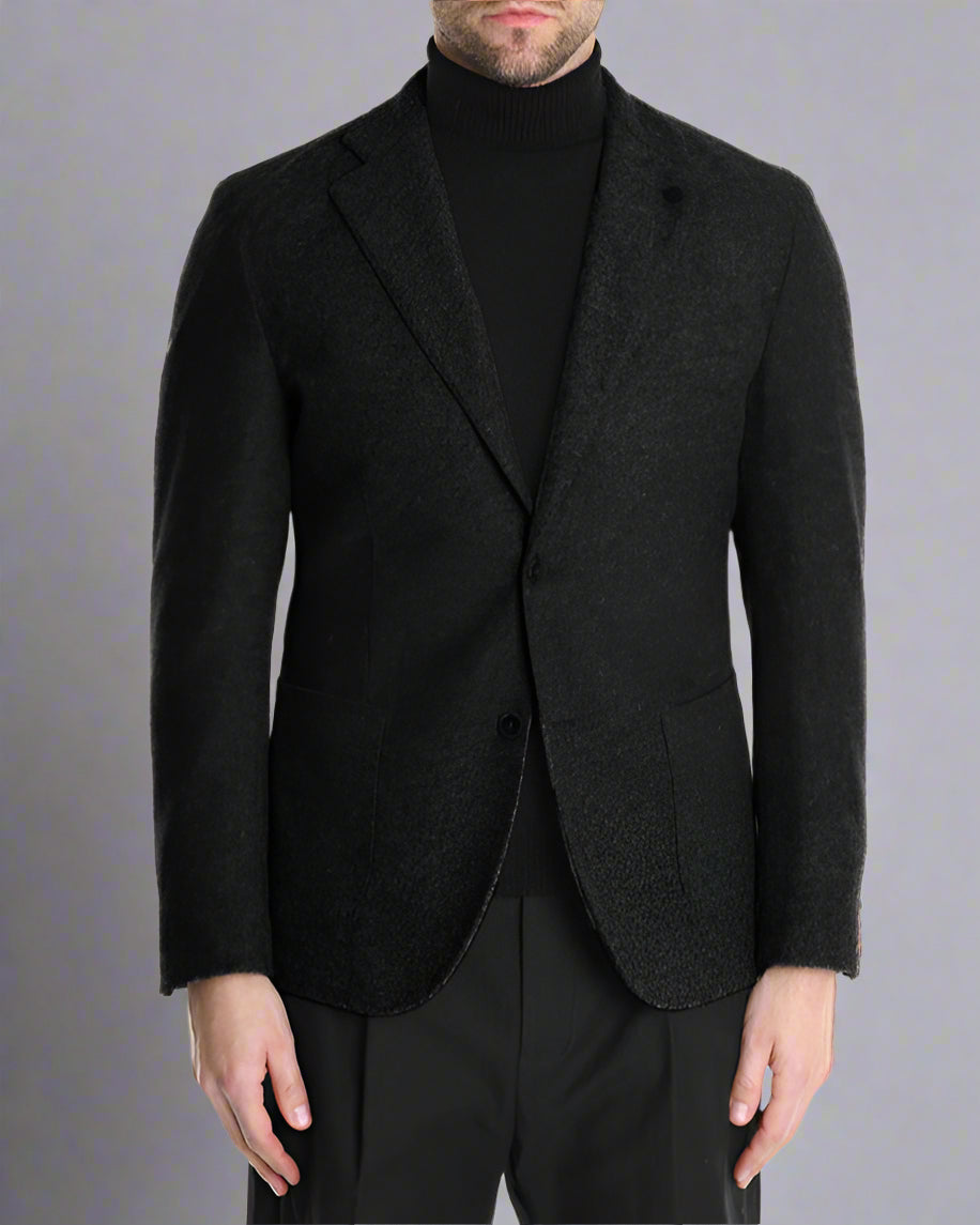 Elegancka marynarka slim fit z włoskiej kolekcji, wykonana z mieszanki wełny parzonej i poliestru, łączy ponadczasowy styl z niezrównanym komfortem. Tkanina o delikatnej, ciepłej fakturze i subtelnym połysku nadaje jej wyjątkowego charakteru, idealnego dla mężczyzn ceniących klasykę z nowoczesnym akcentem. Podszewka zapewnia gładkie dopasowanie i wygodę noszenia przez cały dzień, a krój slim fit podkreśla sylwetkę, dodając szyku i elegancji.