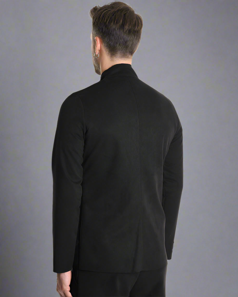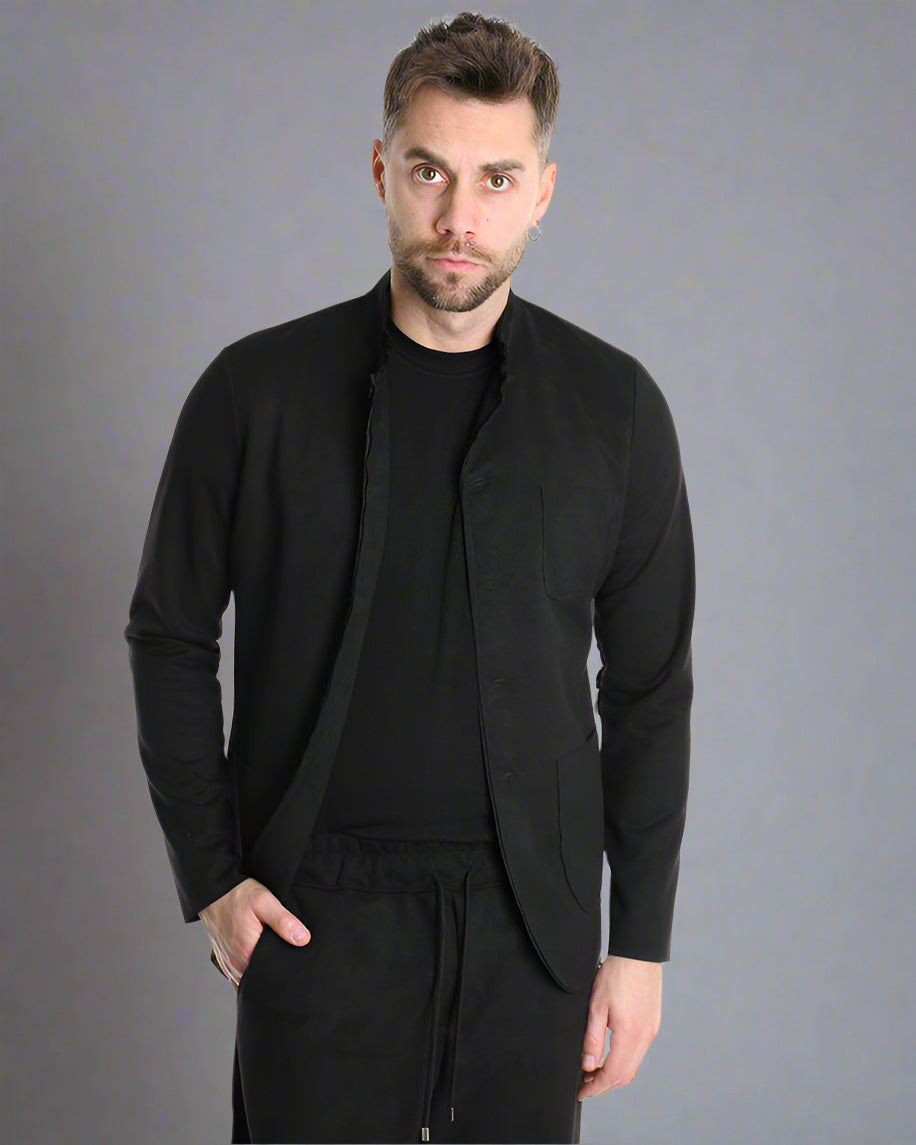 Marynarka o kroju slim fit z włoskiej kolekcji, uszyta z wysokiej jakości elastycznej tkaniny o efekcie alcantara, łączy ponadczasową elegancję z codziennym komfortem. Gładka, aksamitna powierzchnia materiału i subtelny połysk dodają wyrafinowania, a elastyczny skład zapewnia swobodę ruchów.