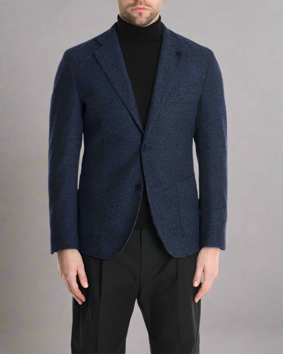 Elegancka marynarka slim fit z włoskiej kolekcji, wykonana z mieszanki wełny parzonej i poliestru, łączy ponadczasowy styl z niezrównanym komfortem. Tkanina o delikatnej, ciepłej fakturze i subtelnym połysku nadaje jej wyjątkowego charakteru, idealnego dla mężczyzn ceniących klasykę z nowoczesnym akcentem. Podszewka zapewnia gładkie dopasowanie i wygodę noszenia przez cały dzień, a krój slim fit podkreśla sylwetkę, dodając szyku i elegancji.