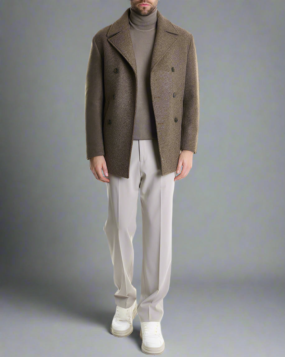 Płaszcz regular fit z mieszanki wełny to kwintesencja elegancji i ponadczasowego stylu. Jego klasyczny, dwurzędowy krój idealnie dopasowuje się do sylwetki, łącząc wyrafinowany wygląd z wygodą noszenia. Wykonany z wysokiej jakości tkaniny, zapewnia ciepło i miękkość, co czyni go doskonałym wyborem na chłodniejsze dni. W pełni podszyty, gwarantuje dodatkowy komfort i trwałość, a włoskie wykonanie podkreśla jego prestiżowy charakter.