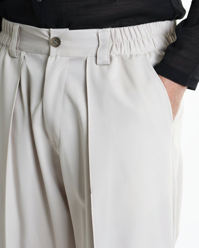 Przednie i tylne zakładki modelują kształt, dodając lekkości i wyrafinowania, a klasyczne zapięcie na zamek oraz kieszenie zapewniają praktyczność bez rezygnacji ze stylu. To model, który świetnie wygląda zarówno z oversize’ową marynarką i loafersami, jak i z prostym t-shirtem oraz sneakersami – uniwersalna baza na co dzień i na półformalne okazje.
