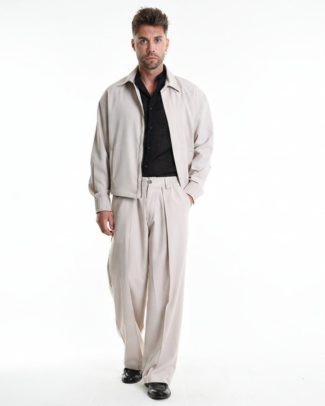 Spodnie XAGON MAN w kroju wide fit to elegancja podana w swobodnej, nowoczesnej odsłonie. Łączą doskonałą drapowalność materiału z subtelnym połyskiem i przyjemnym strechem, dzięki czemu idealnie układają się na sylwetce, dając jednocześnie pełną swobodę ruchów. Szeroki, płynny krój nogawki w połączeniu z elastyczną talią sprawia, że spodnie są komfortowe.