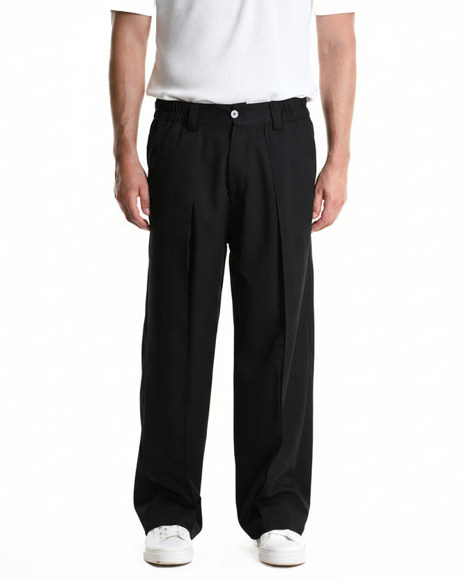 Spodnie XAGON MAN w kroju wide fit to elegancja podana w swobodnej, nowoczesnej odsłonie. Łączą doskonałą drapowalność materiału z subtelnym połyskiem i przyjemnym strechem, dzięki czemu idealnie układają się na sylwetce, dając jednocześnie pełną swobodę ruchów. Szeroki, płynny krój nogawki w połączeniu z elastyczną talią sprawia, że spodnie są komfortowe.